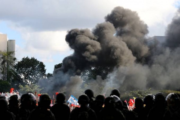 A marcha, convocada pelos trabalhadores com o apoio das frentes Brasil Popular e Povo Sem Medo, é contra as reformas trabalhista e previdenciária e foi fortemente reprimida pela Polícia Militar. Os participantes do protesto também pediram a saída do presidente Michel Temer e a realização de eleições diretas.