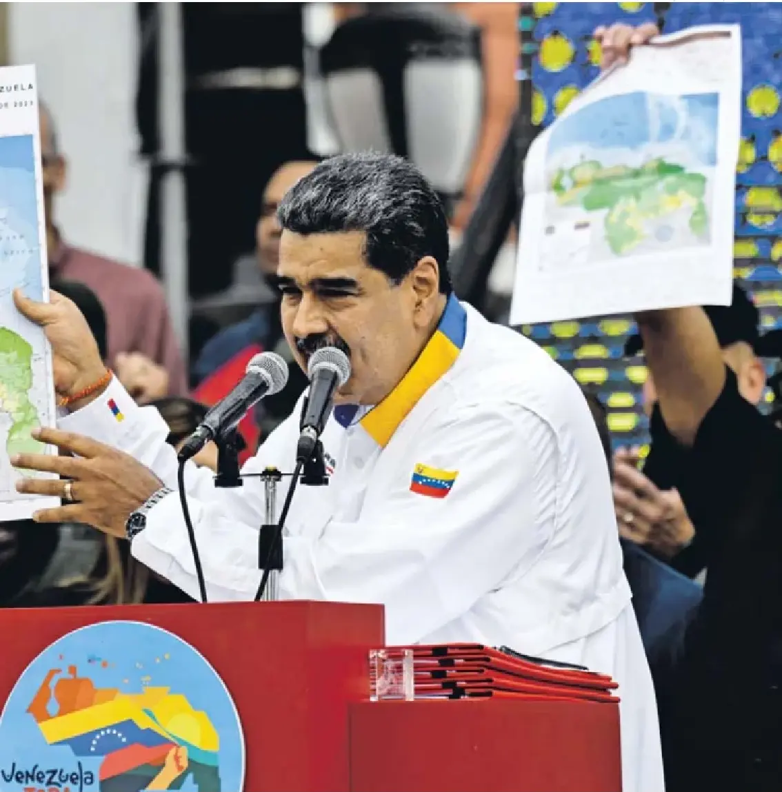 Exactamente. Os campos offshore na bacia Stabroek, na região de Essequibo, são titulados em 75% pela Exxon e pela Chevron. Neste momento, já estão a produzir 650 mil barris por dia, a 30 dólares por barril, com a expectativa de mais do que duplicar a produção em 2027, superando a produção anual da Venezuela. Já é uma produção maior do que a do Reino Unido no Mar do Norte. E Nicolás Maduro reclamou a região de Essequibo como pertença da Venezuela. Depois de muitas ameaças, confrontado com uma acção no Tribunal Internacional de Justiça, em Haia, interposta em 2018, e que perdeu, fez um referendo aos venezuelanos, e não aos habitantes da Guiana Essequiba, a perguntar se Essequibo era, ou não, parte da Venezuela. E, claro, ganhou o sim e Essequibo tornou-se o 24.º Estado da Venezuela — desde Junho de 2025 que tem um governador venezuelano empossado. Nessa altura, a Guiana pediu a intervenção de uma força norte-americana.